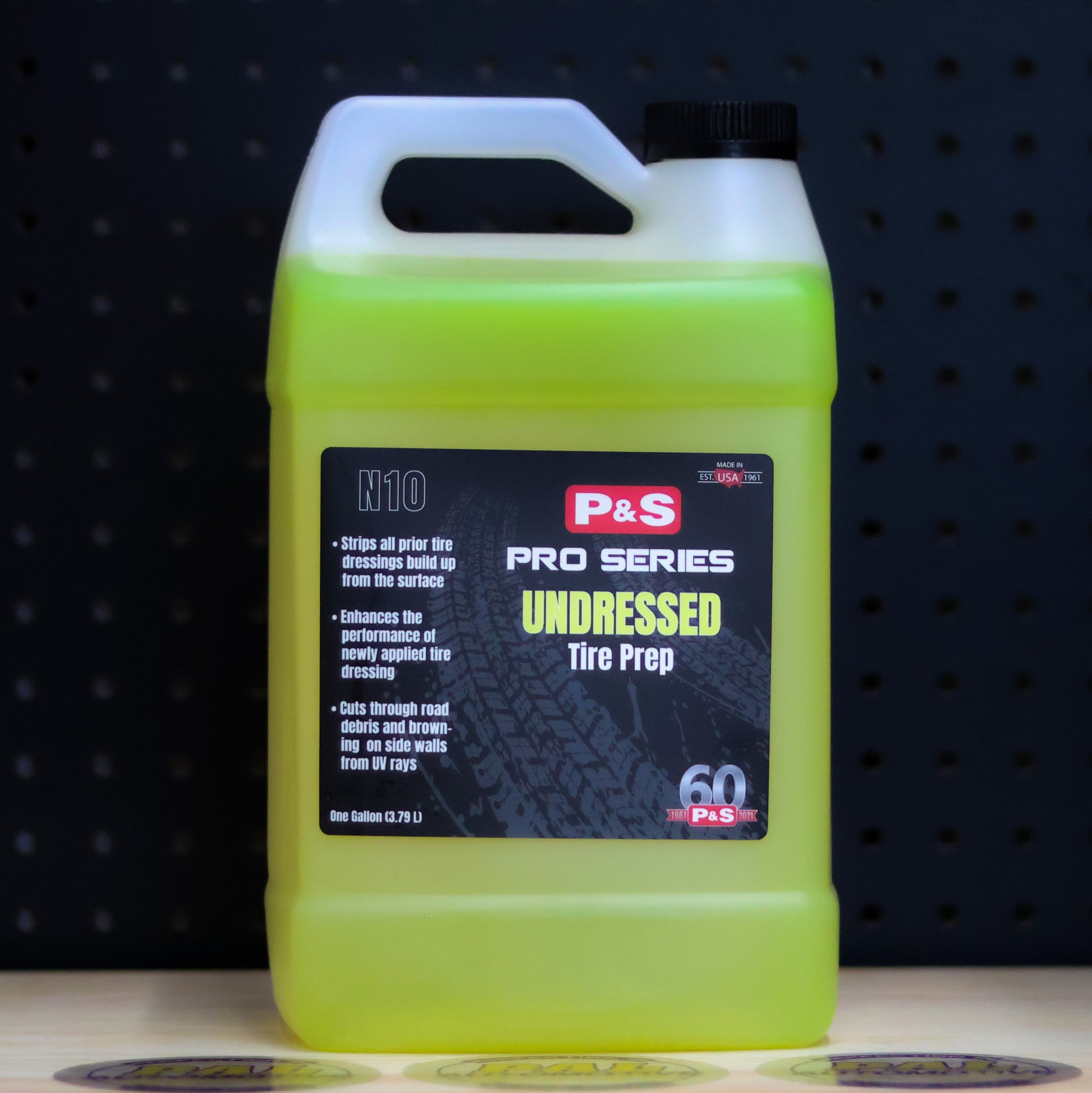 Penetrates and removes layers of road dirt, oil and grime from the tires surface to brighten raised white lettering and whitewalls. Alkaline cleaning solutions, water based solvents and detergents, make Undressed, the best preparation for cleaning tires prior to dressing. Known as the best, most effective tire cleaner on the market.