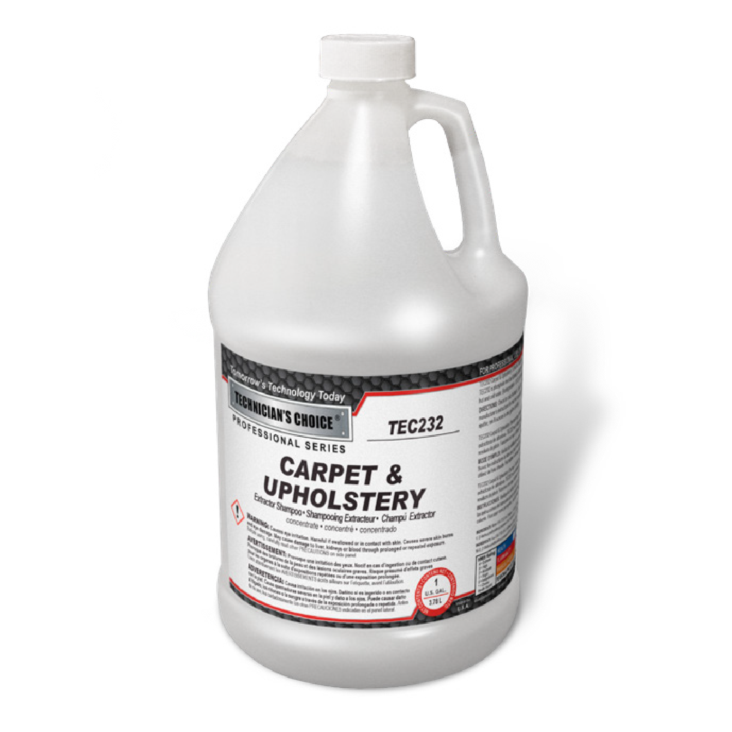 Introducing Technician’s Choice® TEC232 Carpet & Upholstery Extractor Shampoo Concentrate… Dry film, leaves no sticky residue. Low-sudsing and water softening. For use in hot or cold water.