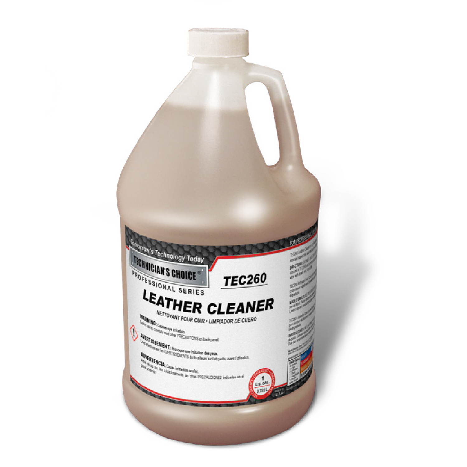 Introducing Technician’s Choice® TEC260 Leather Cleaner… Is pH balanced to deep clean, restore and lubricate leather to return to its original luster. Excellent for cleaning oil and water based stains.