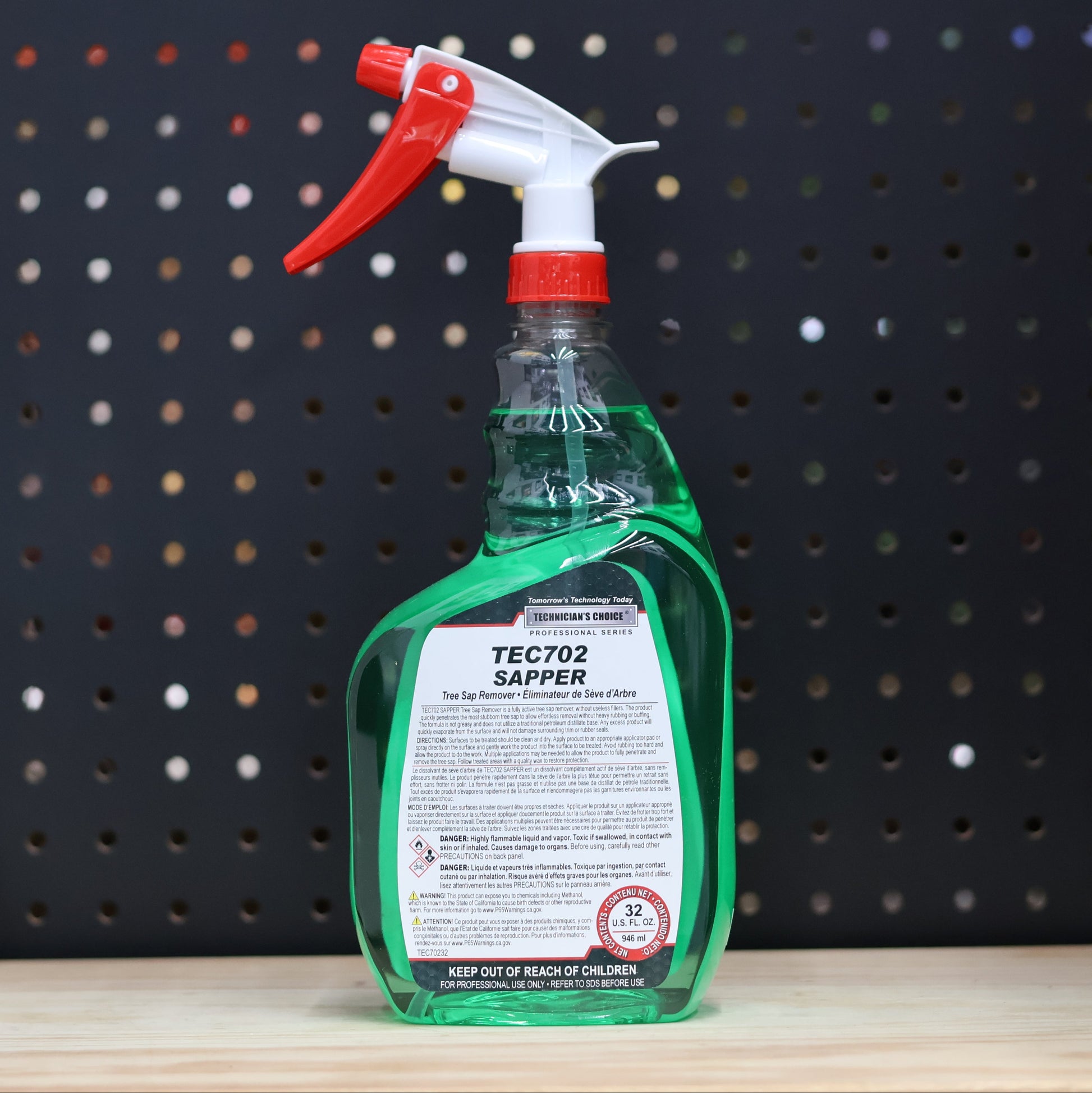 Technician's Choice Sapper is a fully active tree sap remover, without useless fillers. The product quickly penetrates the most stubborn tree sap to allow effortless removal without heavy rubbing or buffing. The formula is not greasy and does not utilize a traditional petroleum distillate base. Any excess product will quickly evaporate from the surface and will not damage surrounding trim or rubber seals.