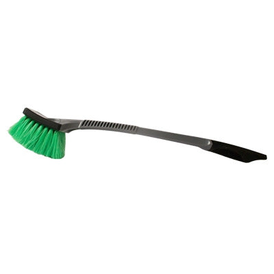Ultra Soft flagged-tip Green Nylon bristles are ultra safe for all surfaces. Nylon bristles hold water and cleaning solution while safely washing away dirt and grime. Nylon bristles are long-wearing, resistant to rot, mildew, alkalis, most solvents and heat. Ergonomic handle provides greater comfort and better grip control. Brush Length: 20" Bristle Length: 2"