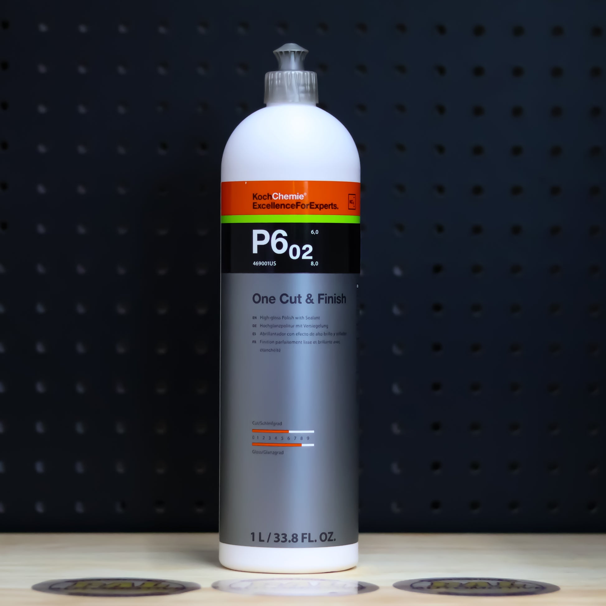 The One Cut & Finish P6.02 is a machine polish for the permanent removal of polishing haze, holograms and scratches as well as sanding from grit P 2000 with a simultaneous sealing effect. A brilliant and durable high-gloss finish is created through the use of homogeneous abrasives. The innovative One Cut & Finish P6.02 combines an optimal ratio of abrasiveness and gloss for economical and effective work in vehicle preparation. The One Cut & Finish P6.02 is economical, easy to polish and easy to wipe off. Contains carnauba wax and non-volatile silicones. Grinding level: 6.0 Gloss level: 8.0