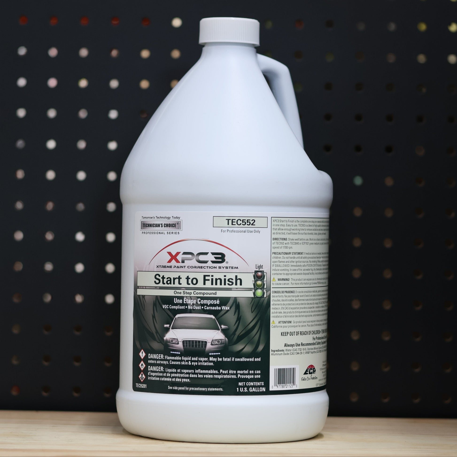 XPC3® Start to Finish is the complete one step pre-owned vehicle correction / protection product. It cleans, polishes & waxes in one step. Easy to use. TEC552 is a blend of high quality dimensioning abrasives, VOC compliant solvents & carnauba wax that allow enough working time to remove oxidation & micro imperfections from any painted surface, old or new. When used as directed, it will leave the surface leveled, clean, glossy & waxed.