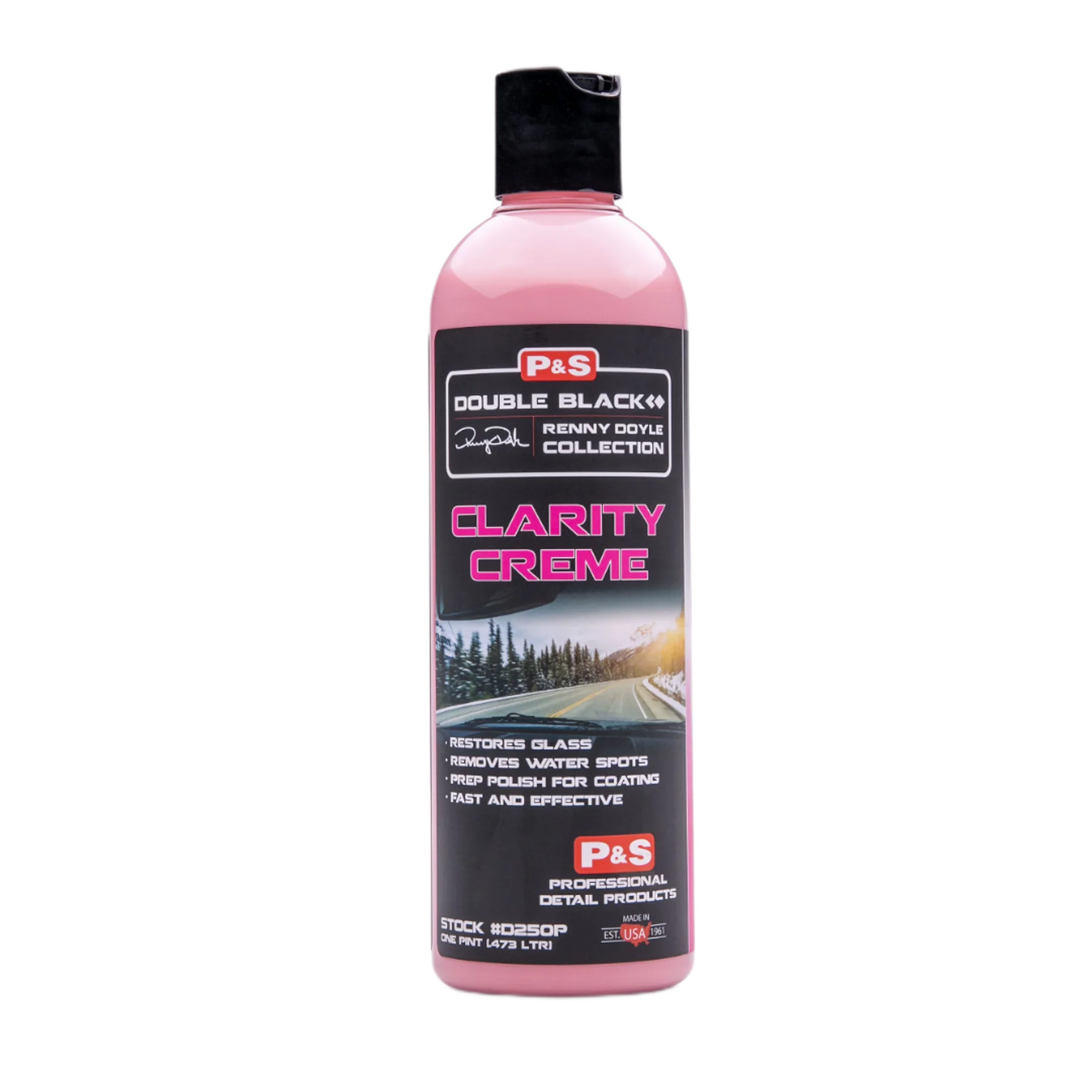 One of the biggest challenges for detailers is the ability to create crystal clear glass. Over time exterior glass accumulates water spots, mineral deposits, calcium build up, wiper blade residue, etc. and glass cleaner will no longer do the trick. Glass needs to be polished back to its original condition. Clarity Creme Glass Polish quickly and effectively removes particulate to create a smooth OEM glass finish. Clarity Creme Glass Polish may be used by hand or machine to restore glass or used in preparation for the installation of Inspiration Vue Glass coating. Wash glass and clay glass if necessary. For light duty polishing use by hand with microfiber towel, For medium duty cleaning and beyond use machine paired with foam or wool pad depending upon severity. Polish using over lapping pattern either by hand or machine until glass is restored to original condition. Repeat as necessary. Once complete allow for polish to dry to haze and polish to bright finish.