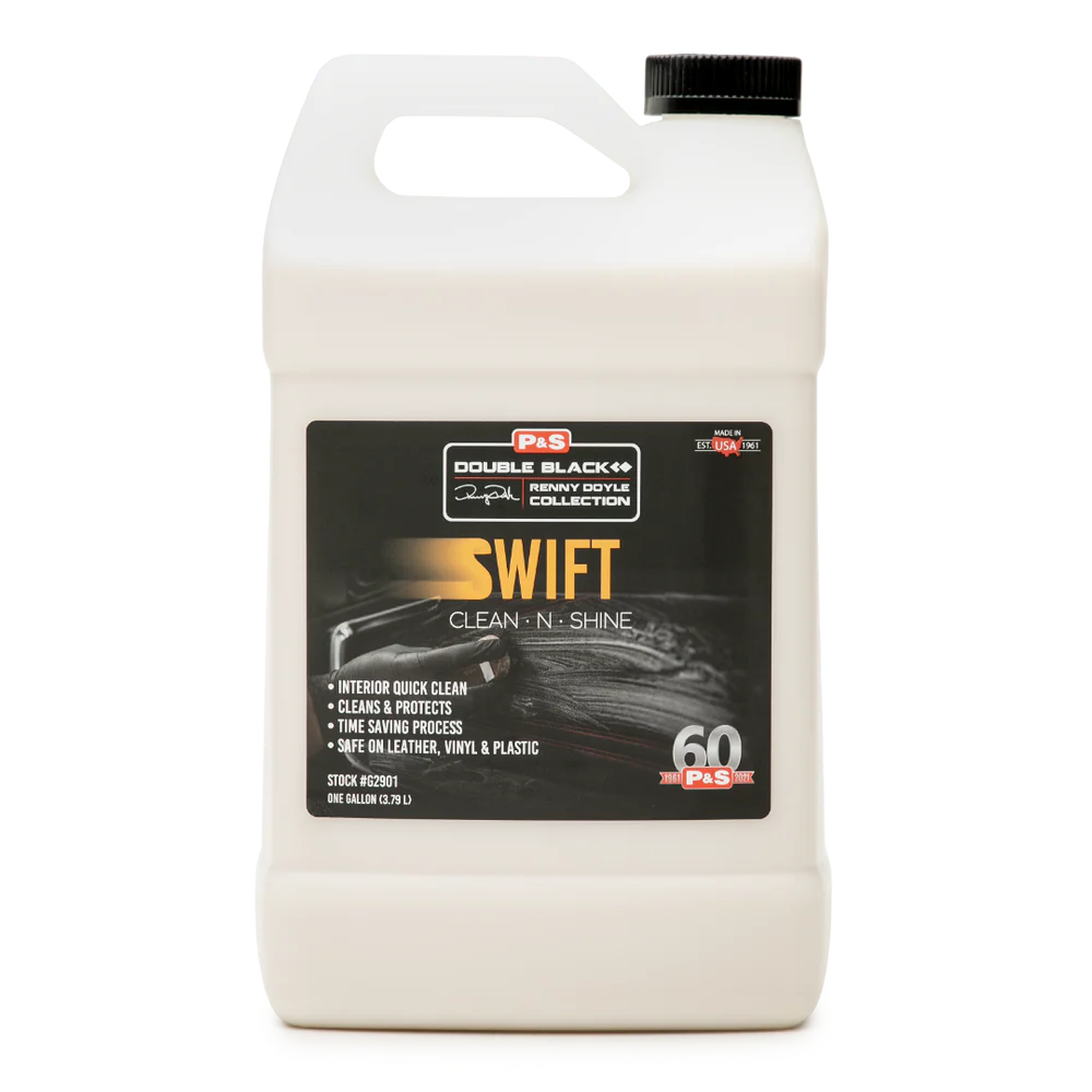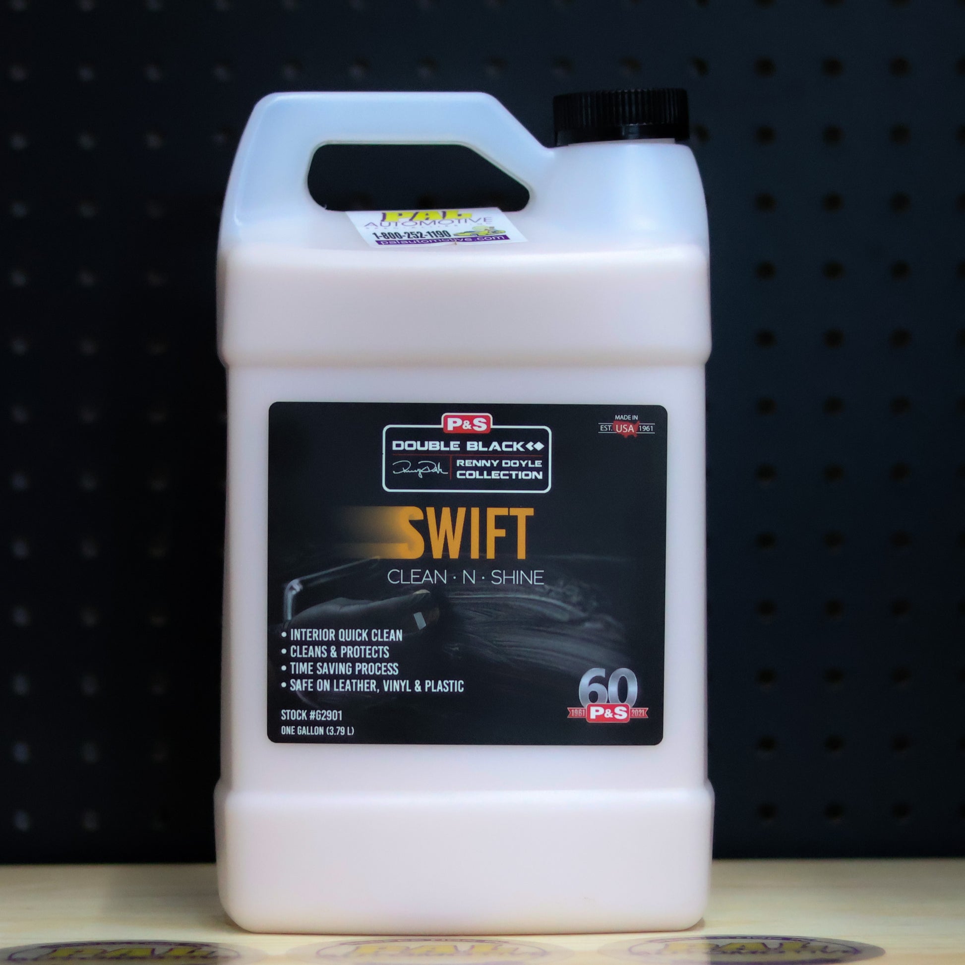 SWIFT Clean & Shine is the All-In-One interior quick detail clean and shine product. SWIFT quickly and effectively removes dirt and grime from leather, vinyl and plastic. Once cleaned SWIFT leaves behind a conditioned dressed appearance. The pleasant fragrance of SWIFT makes using this product a great experience for the derailer and consumer.