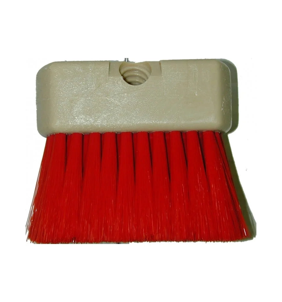 Magnolia red nylon bristles set in foam plastic block with one tapered and one flow-through threaded handle hole. Perfect to clean your wheels when attached to a pole.