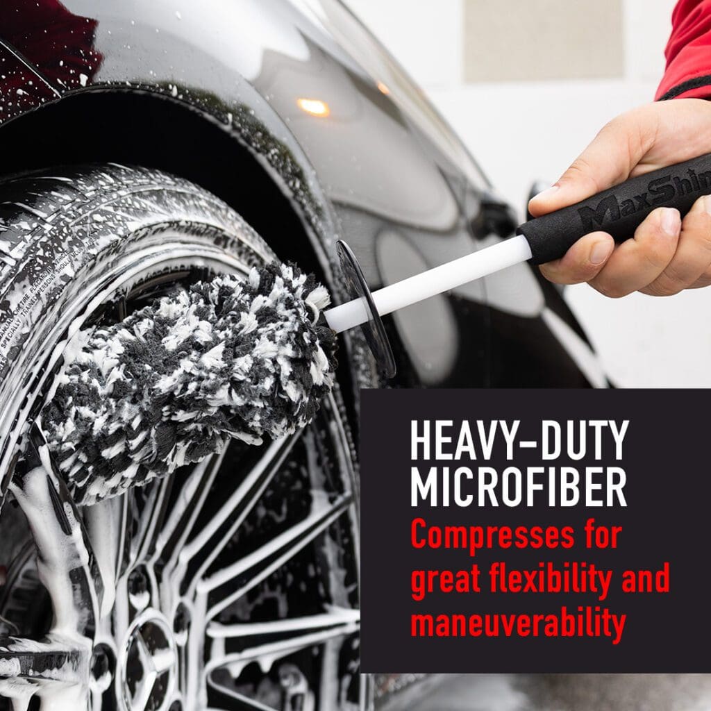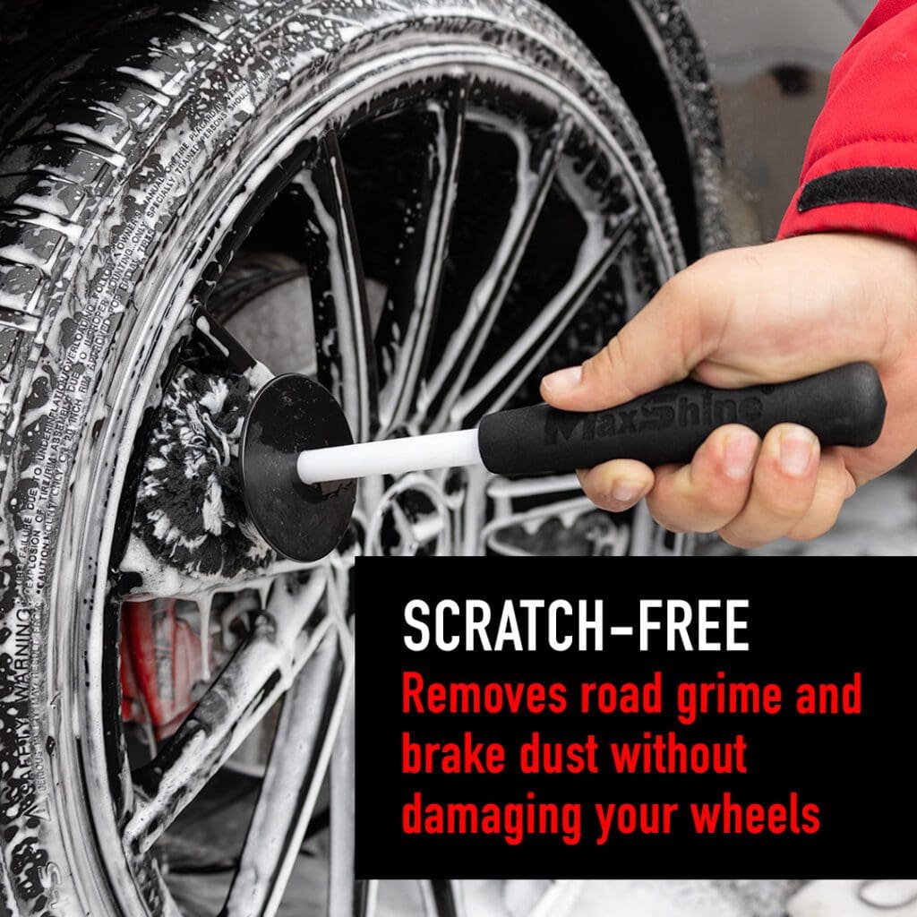 - Microfiber Wheel Brush, 3-Piece Kit removes road grime and brake dust without damaging your wheels and other car surfaces.