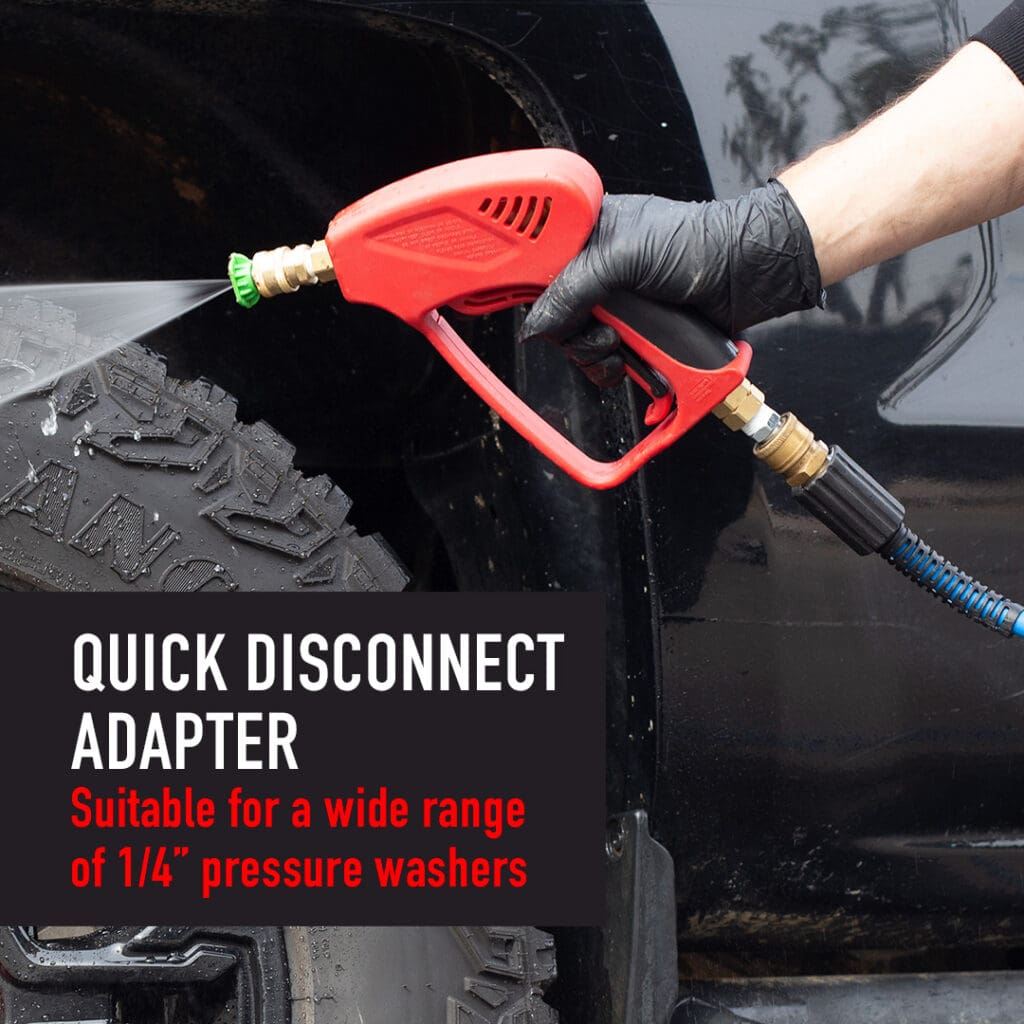 - The pressure washer gun is light and easy to use. 5000PSI, equivalent to 345 bar, brass fitting, meets daily cleaning needs for your car, walls, and garden.