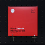 Koch Chemie Heavy Cut Pad features an abrasive foam for removing strong weathering and deep scratches. The short height of 23mm creates low torsion forces, very good handling and the highest level of stability. The special density of the foam material enables long-lasting compression hardness during polishing. The optimized reticulation(open cellular structure) and cell count contribute to a high level of abrasiveness and excellent hygiene factors. The milling edge ensures extra flexibility for the pads, enabling them to fit around contours easier. The colorful, non-woven material, suitable for polishing, ensures process safety.