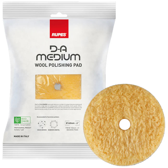 The coarse wool polishing pads for random orbital, gear driven, and triple action, are especially designed for severe paint defect removal. The blue foam of the coarse wool pad is more rigid and dense which maximizes the translation of tool movement to the work surface, providing increased cutting power.