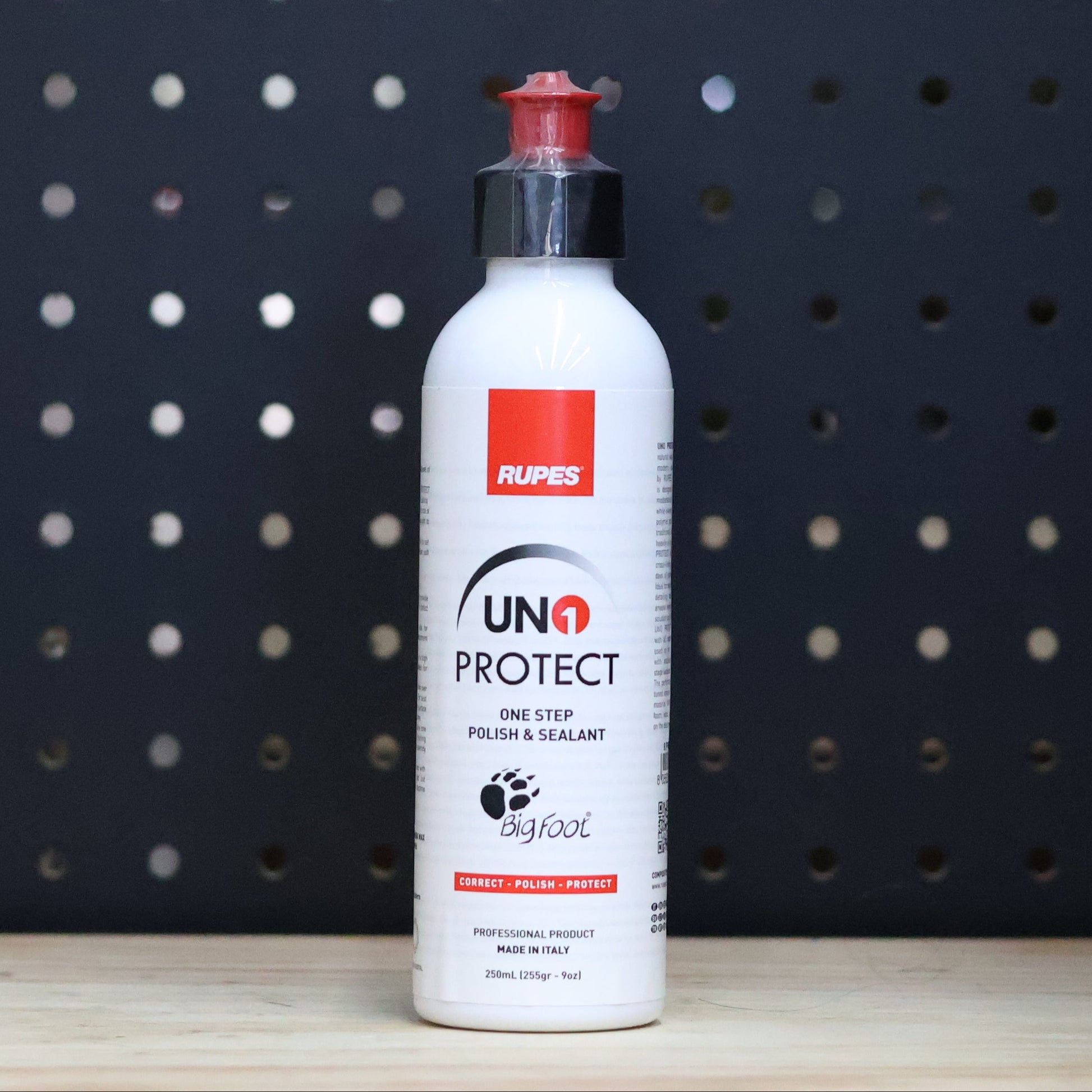 RUPES UNO PROTECT is an “all-in-one” compound, polish, and protectant that can remove light defects and leave a high-gloss, protected finish, in just one-step.