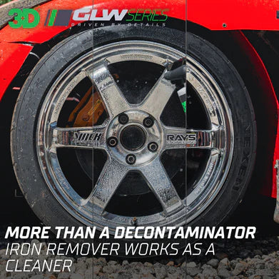 Experience the pinnacle of automotive care with 3D GLW Series Iron Remover – an elite decontaminant fortified with unrivaled efficiency and safety, guaranteed to elevate your car's appearance and performance. With its swift and thorough decontamination process, the GLW Series Iron Remover masterfully tackles the toughest iron particles and corrosion, granting your wheels and paint surfaces the ultimate treatment they deserve. Be assured that this high-performance, acid-free Iron Remover extends its prowess to cater to all wheel types, from painted elegance to chrome brilliance, polished luxury, and coated aluminum grandeur – safeguarding their pristine appearance without compromising their surfaces. Embrace the future of iron contaminant removal, where manual scrubbing becomes a thing of the past, as the 3D GLW Series Iron Remover ushers in a new era of unparalleled convenience, leaving your car's wheels glowing with a renewed radiance.