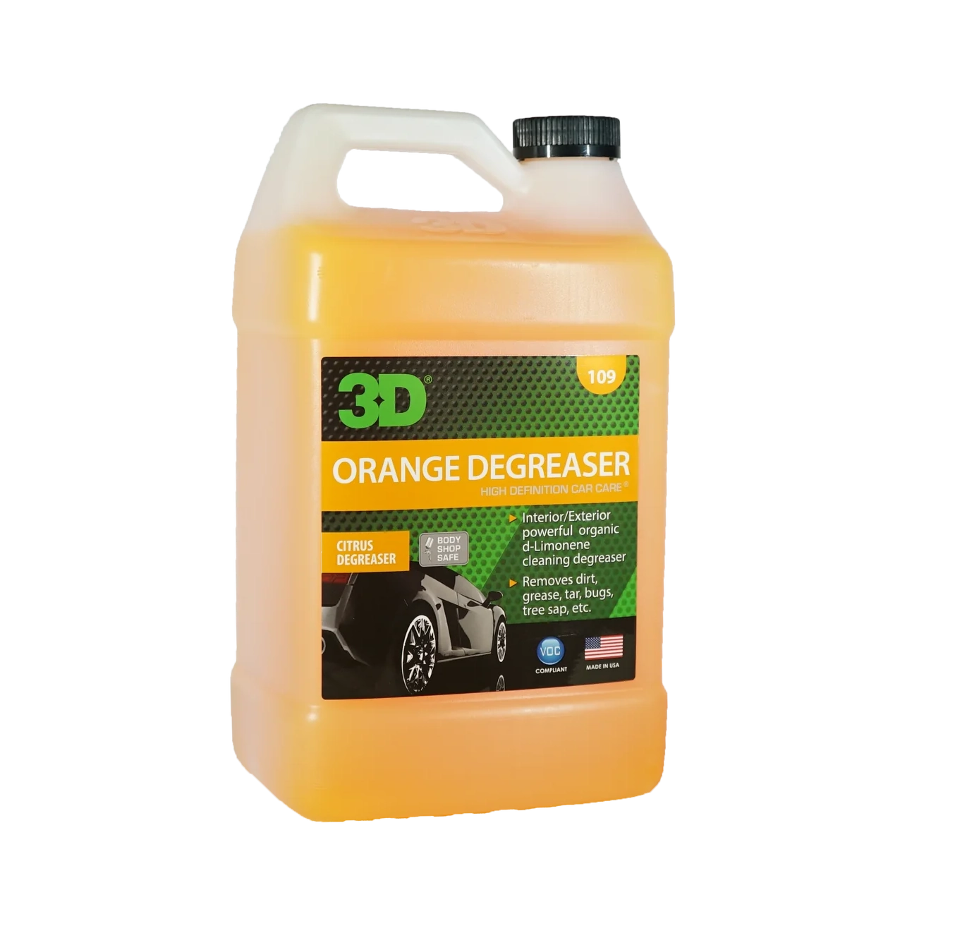 Why use 3D Orange Degreaser over other options? - There are a lot of citrus based degreasers on the market.  What separates our citrus degreaser from all the rest is the unique water-based formula we created that enables the citrus oils to go to work quickly in a full-strength solution but at the same time, because of the water-base or water-soluble base, our degreaser wipes off easily and clean or rinses off easily and clean