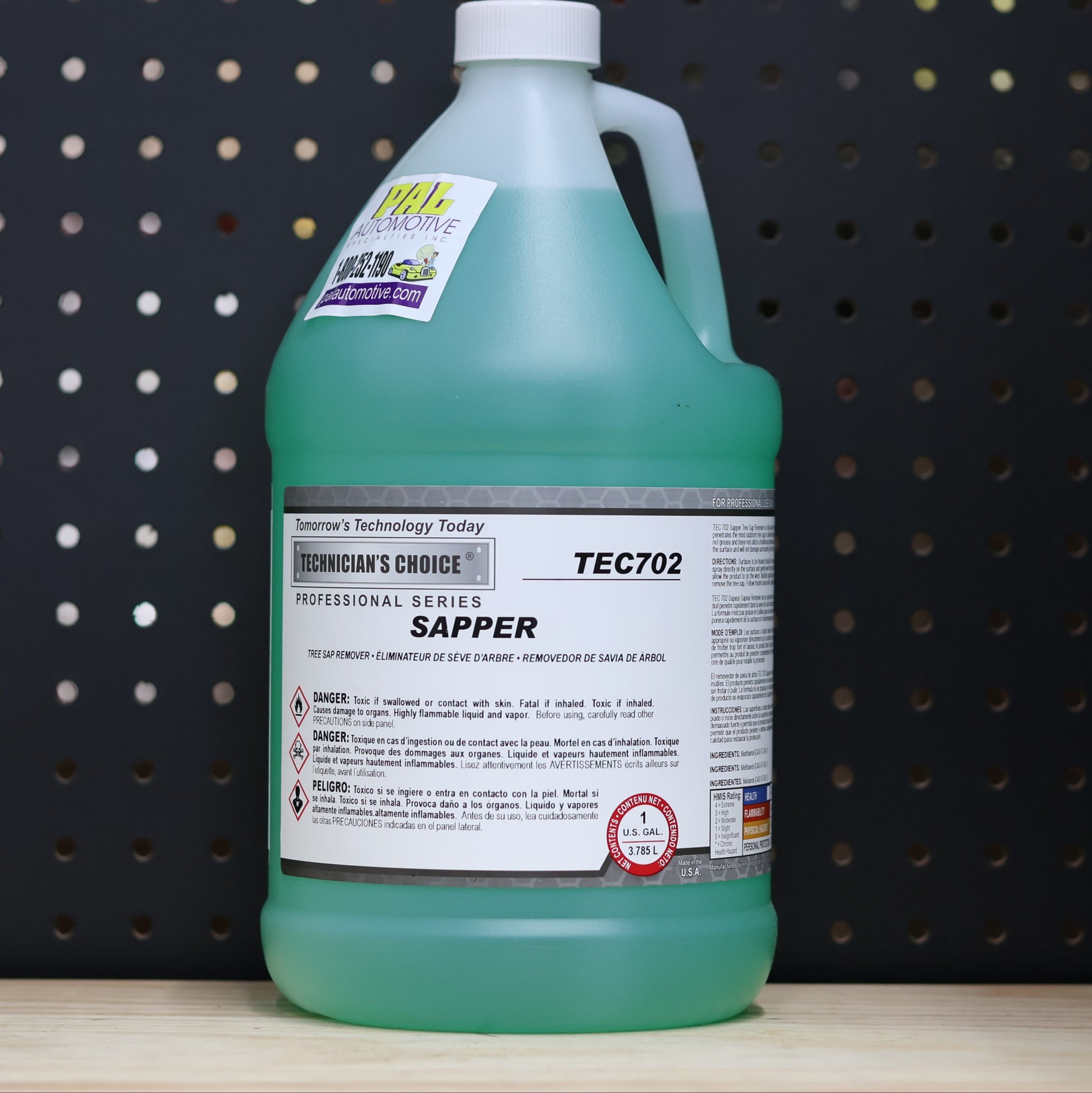 Technician's Choice Sapper is a fully active tree sap remover, without useless fillers. The product quickly penetrates the most stubborn tree sap to allow effortless removal without heavy rubbing or buffing. The formula is not greasy and does not utilize a traditional petroleum distillate base. Any excess product will quickly evaporate from the surface and will not damage surrounding trim or rubber seals.