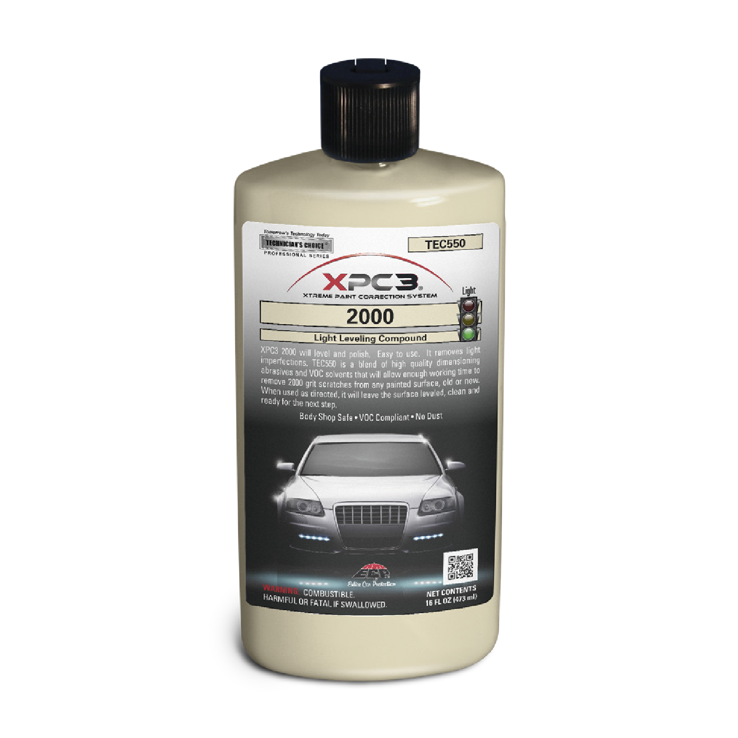 TEC550 XPC3® 2000 Light Leveling Compound will level & polish. Easy to use. It removes light imperfections. TEC550 is a blend of high quality dimensioning abrasives & VOC solvents that will allow enough working time to remove 2000 grit scratches from any painted surface, old or new. When used as directed, it will leave the surface leveled, clean & ready for the next step.