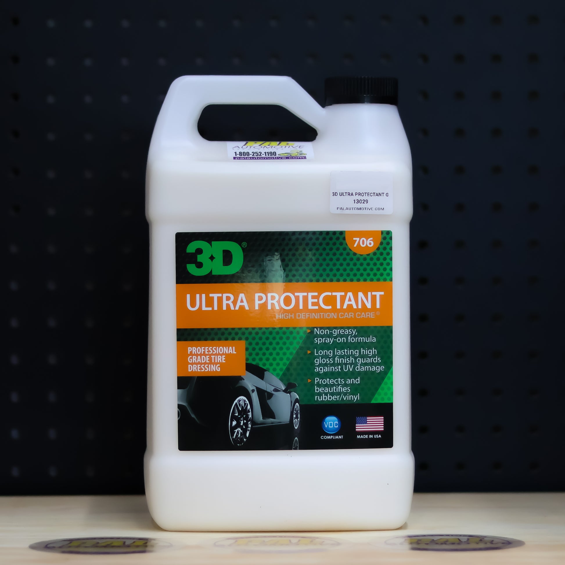 There’s no greasy feel or look to this tire dressing and it works just as well on all types of exterior rubber and vinyl dressing. Aptly named, 3D ULTRA Protectant, you’ll find out for yourself after using it just one time.