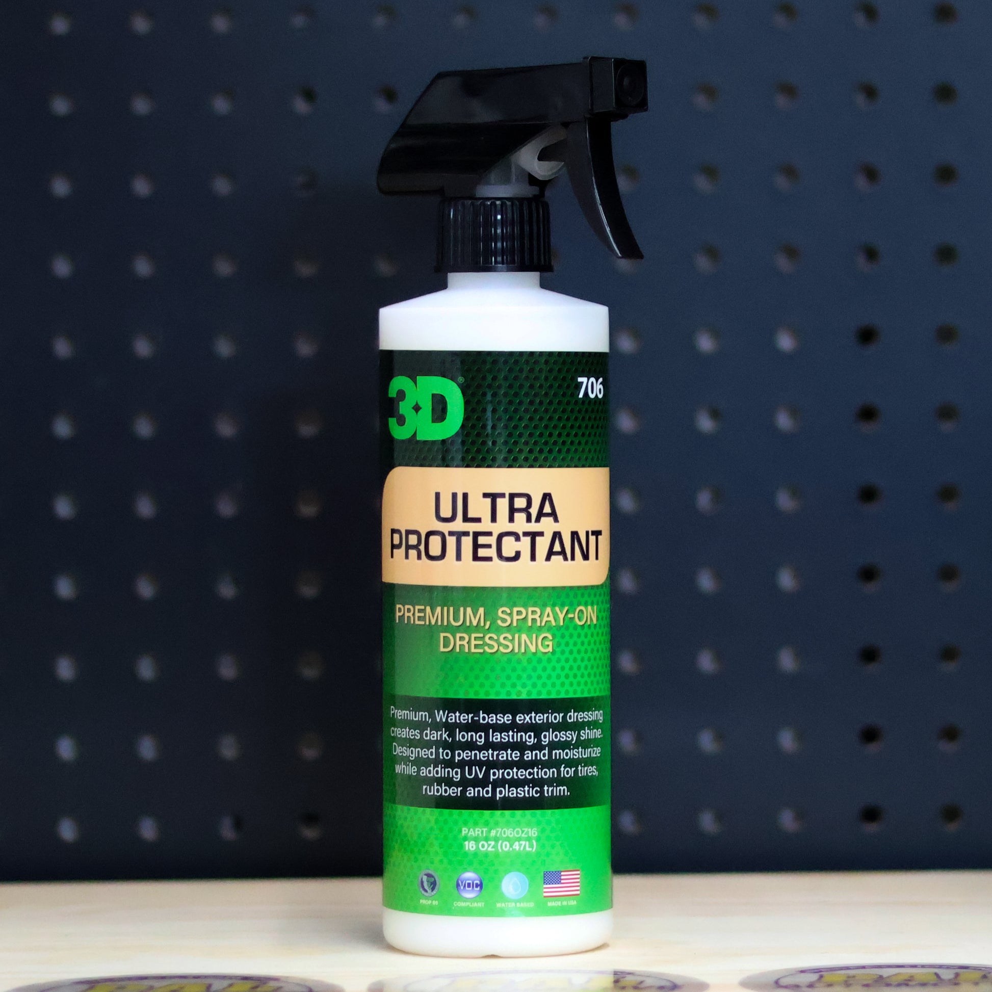 3D Ultra Protectant will be your favorite tire and trim dressing. It works fast, it’s easy to apply and the results are consistent over a wide spectrum of tires and just about any type of exterior trim. You’ll get incredible gloss from a water-based protectant that dries to the touch and resists washing off when exposed to wet weather and even repeated washings.
