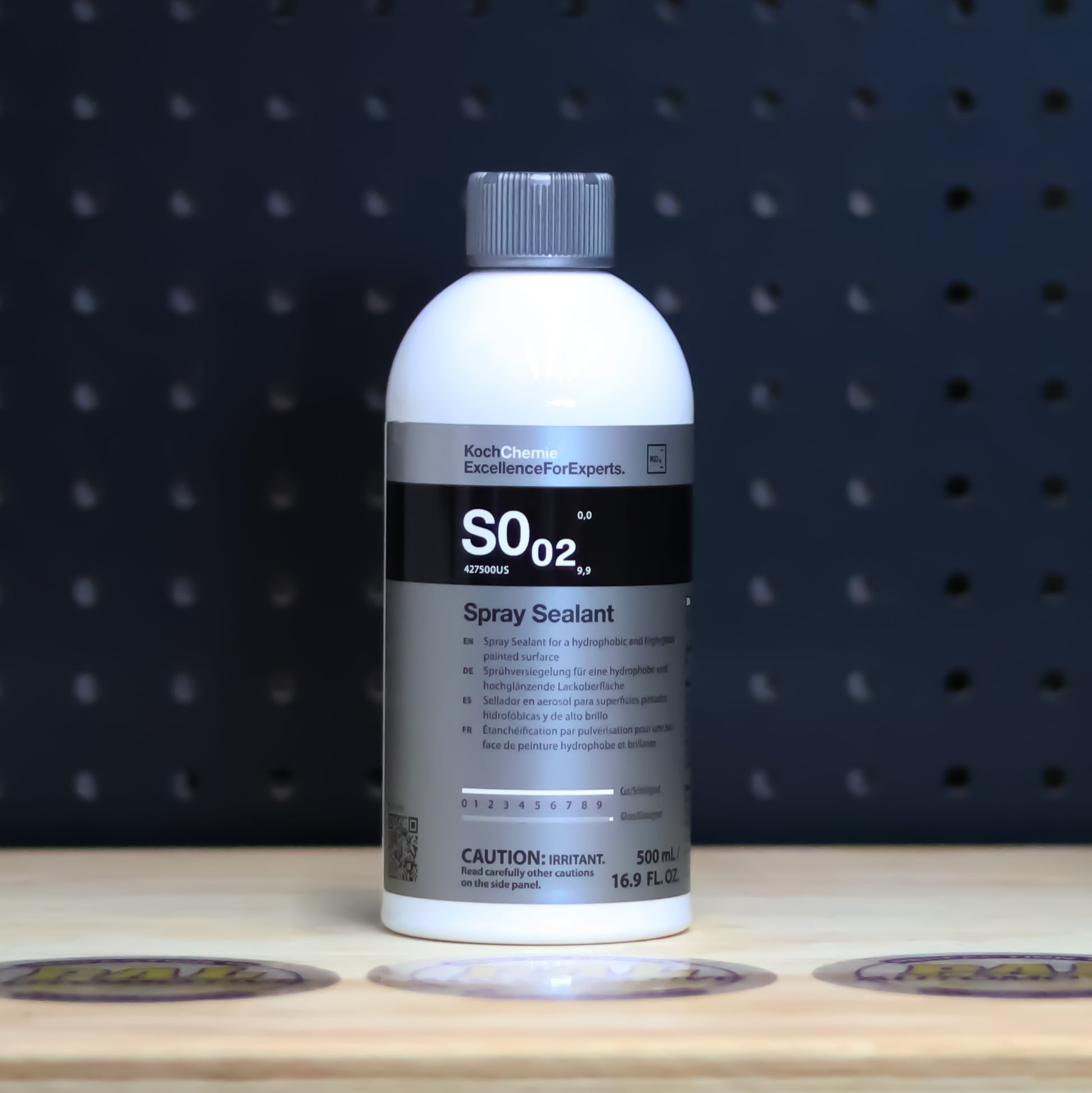 Koch Chemie Spray Sealant S0.02 is an extremely efficient sealing spray for a quick and easy achievement of a high-gloss surface. Gives the paint a velvety surface and a clearly visible color deepening. The sealing components create a perfect water beading effect.