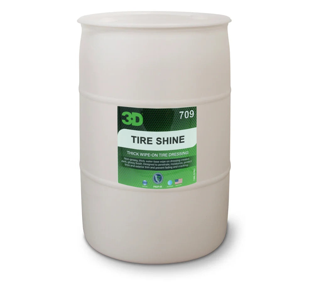 3D Tire Shine is a thick, rich water-based gel, it offers a very clean application without any sloppy drips or smears to deal with after the fact. Simply wipe on and massage into the tire sidewall and then allow to dry. For even more shine, wait a few minutes and apply a second, thin light application and allow this second application to dry before driving. Your tires will look amazing without becoming an oily, greasy dust-magnet that will be a pain to clean the next time you wash your car.