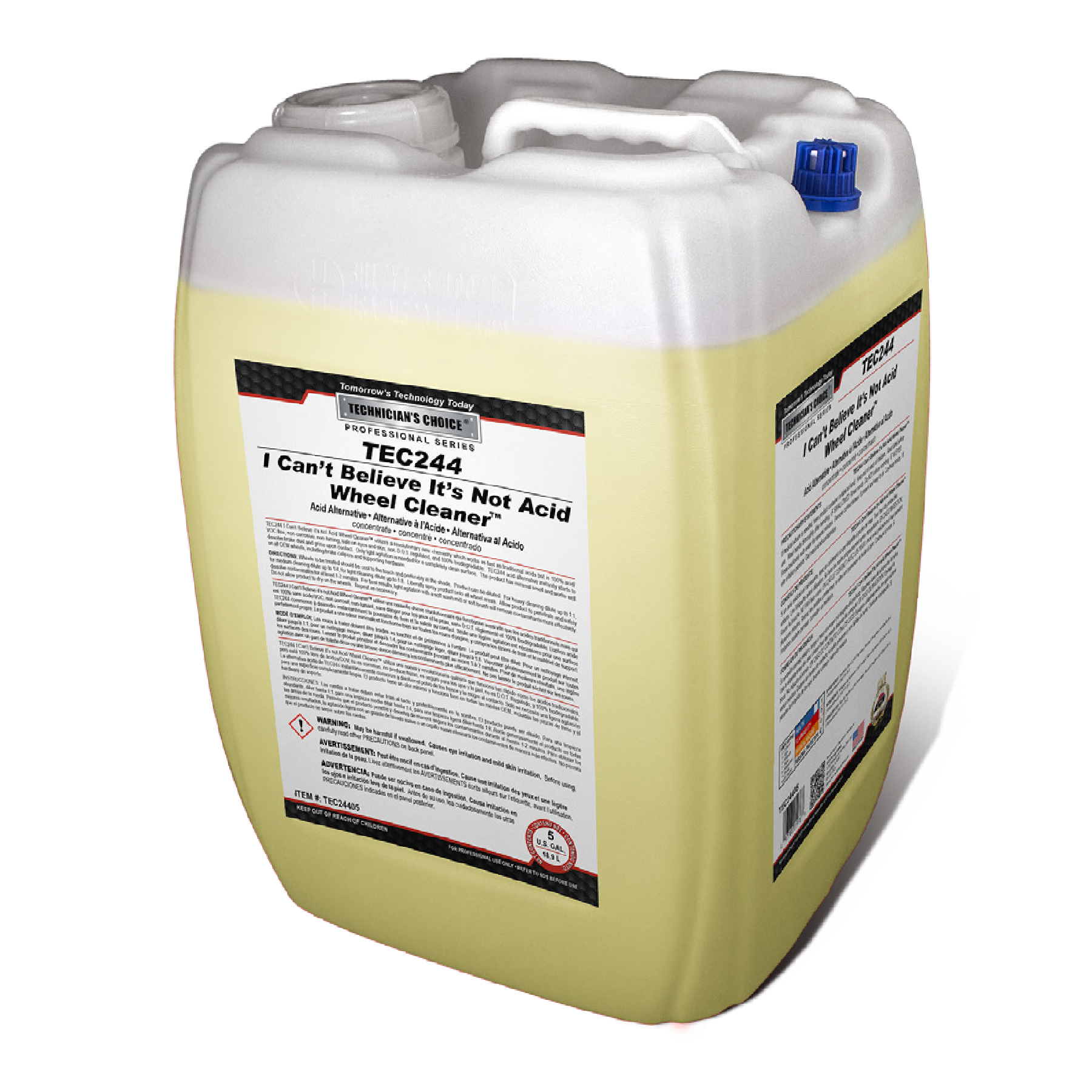 TEC244 I Can™t Believe its not Acid Wheel Cleaner„ utilizes a revolutionary new chemistry which works as fast as traditional acids but is 100% acid/VOC free, non-corrosive, non fuming, safe on eyes and skin, non-D.O.T. regulated, and 100% biodegradable. TEC244 acid alternative instantly starts to dissolve brake dust and grime upon contact. Only light agitation is needed for a completely clean surface. The product has minimal smell and works well on all OEM wheels, including brake calipers and supporting hardware.